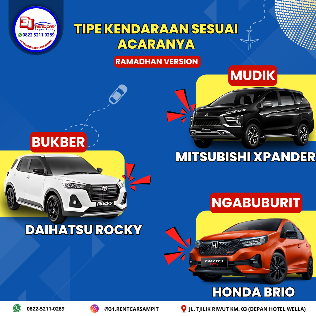 31 Rentcar Sampit menyediakan dua opsi ini dengan fleksibilitas tinggi.